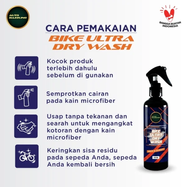AUTODAZZLING ULTRA DRYWASH PLUS WAX CAIRAN YANG DIFORMULASIKAN UNTUK MEMBERSIHKAN SEPEDA DENGAN KANDUNGAN WAX COCOK UNTUK CAT GLOSSY DAN MEMPERTEGAS WARNA DOFF.